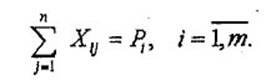 2. Равенство потребностей и объемов получаемого продукта в каждом пункте потребления: