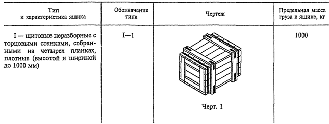 1.1. Типы ящиков должны соответствовать указанным в табл. 1.