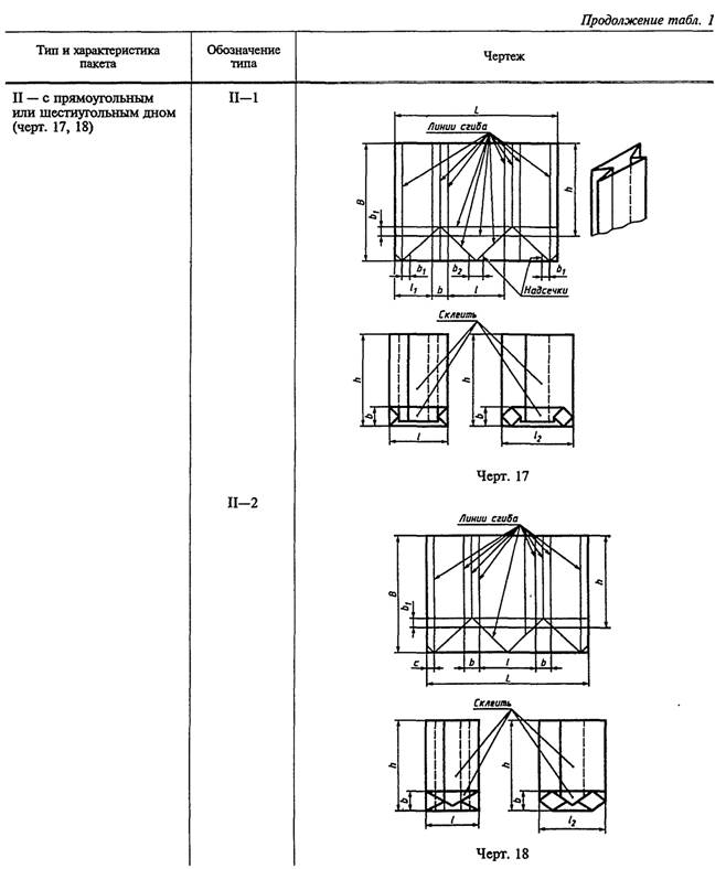 таблице: L - длина развертки; l - длина пакета;