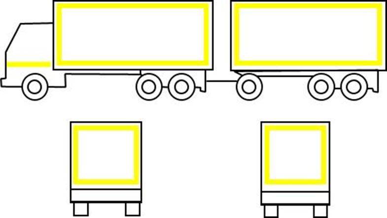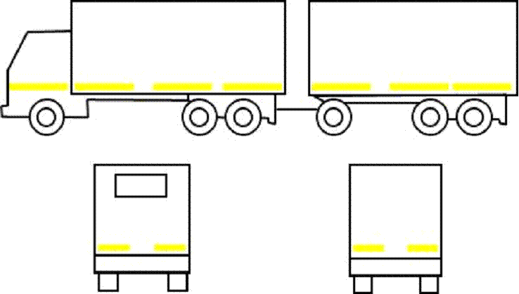 Рисунок А.2 — Контурная маркировка автопоездов в составе автомобиля-тягача и полуприцепа-фургона или полуприцепа с тентом
