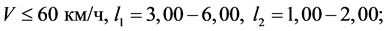 Размеры даны для V > 60 км/ч (в скобках - отличающиеся размеры для V <= 60 км/ч)