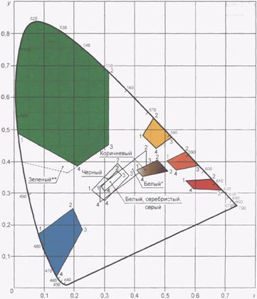 Рисунок 1. График цветовых областей для знаков со световозвращающей поверхностью