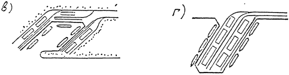 Рисунок 5.2. Начертание причального фронта: а - фронтальное; б, в - ковшовое; г, д - пирсовое